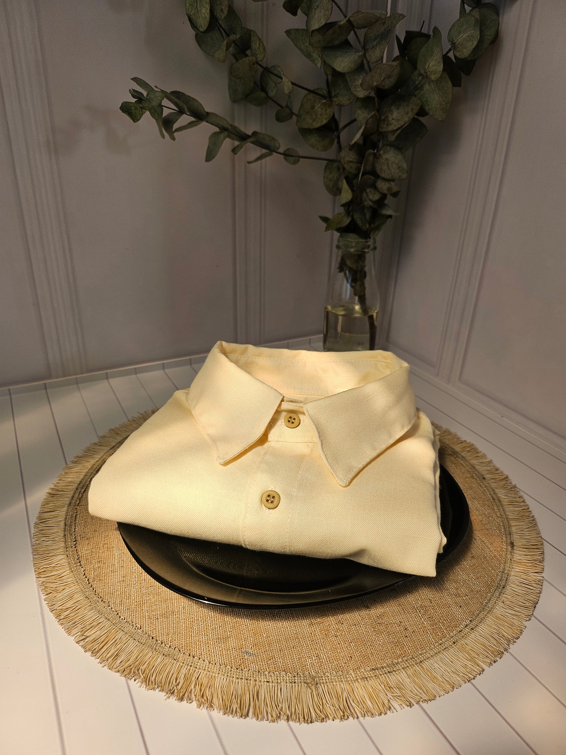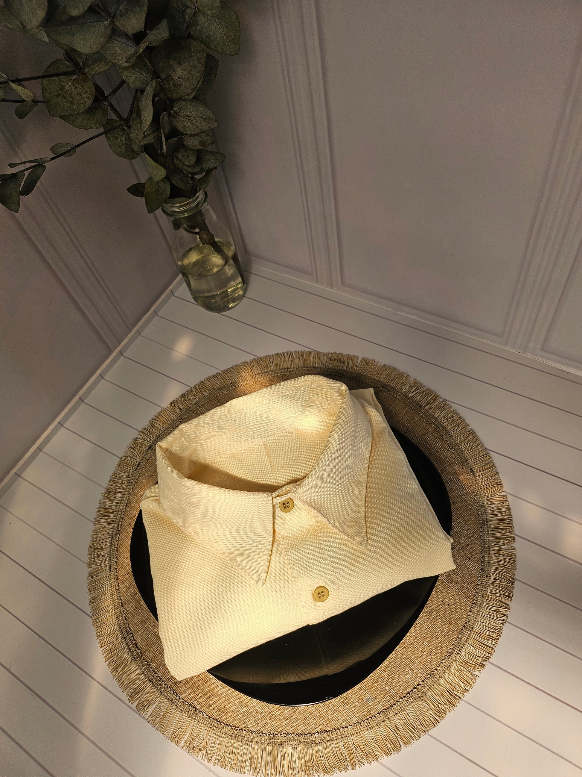 Camisa manga corta color crema de Lino | Línea 1530
